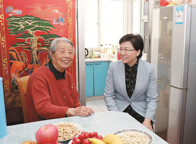 在孫穎家中,韓立明與她親切交談,關(guān)切詢問(wèn)身體生活情況。得知老人退休后一直堅(jiān)持學(xué)習(xí)黨的創(chuàng)新理論,盡己所能幫助困難群眾,韓立明為老人點(diǎn)贊。