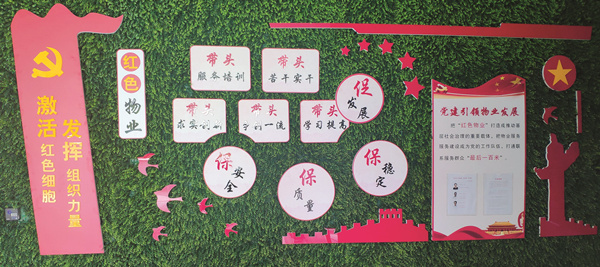 為了彰顯紅色物業(yè)特色屬性,強調(diào)黨組織引領作用的發(fā)揮、紅色物業(yè)公益屬性和企業(yè)社會價值,物業(yè)公司提出了“五帶三?!笨谔枺杭础皫ь^服務培訓、帶頭苦干實干、帶頭求實創(chuàng)新、帶頭爭創(chuàng)一流、帶頭學習提高”和“保安全、保質(zhì)量、保穩(wěn)定、促發(fā)展”,力爭把紅色物業(yè)打造成推動基層社會治理的重要載體,把物業(yè)服務建設成為黨的工作隊伍,打通聯(lián)系服務群眾的“最后一百米”。